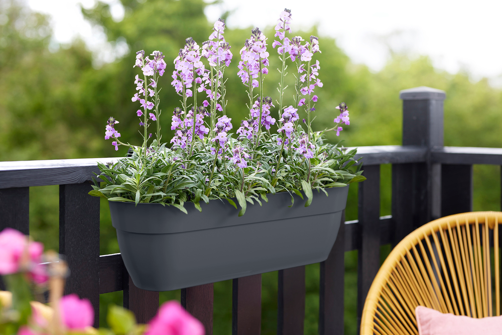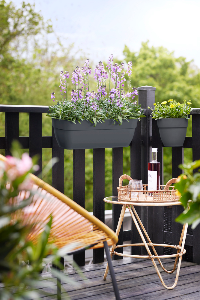 Breng natuur op hoogte met de elho vibia easy hanger XL. Deze ruime balkonbak is lichtgewicht, makkelijk te plaatsen op balkonrelingen tot 6,5 cm breed, en zorgt direct voor een gezellige groene sfeer. De vlakke achterkant houdt de bak stevig op zijn plek, terwijl de slimme overlooppijpjes ervoor zorgen dat overtollig water wordt afgevoerd, zodat je planten gezond en gelukkig blijven. Het perfecte voorbeeld van slim design voor een bloeiend balkon!